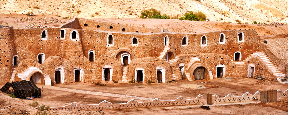 Этот город может показаться знакомым, если вы смотрели фильм «Звёздные войны». Один из домов в Матмате, гостиница «Сиди-Дрисс», стал знаменитым после того, как его сняли в этом фильме как родной дом Люка Скайуокера. Жители этой местности обитают в больших землянках и искусственных пещерах, выкопанных в твёрдом грунте. Там имеются кухни, комнаты и гостиные, но некоторые посетители говорят, что это место, будто, с другой планеты. Тунис – это сказочная и удивительная страна во всех отношениях: здесь Вам и древнеримские амфитеатры, и непобедимый Карфаген, и необъятные просторы Сахары. В Тунисе есть практически все, что только человек может себе вообразить. Но если Вам хочется чего-нибудь совсем уж необычного, то Вам следует отправиться в знаменитый пещерный город Матмата, в котором вот уже около 1500 лет в меловых гротах на склонах гор проживают самые настоящие троглодиты. Причем троглодиты – это не маленькие чрезвычайно прожорливые и злобные создания из детских сказок, а одно из самых дре