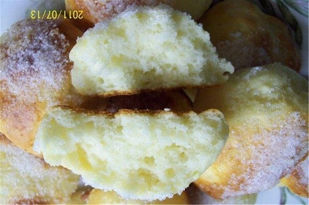 Ингредиенты на 10-12 шт: 250 гр пастообразного творога (у меня обыкновенный 9% слегка размягченный молоком) 2 яйца 3 ст.л. сахара щепотка соли 1 п. ванильного сахара (10 гр) 1 п. разрыхлителя (15 гр можно меньше) 250 гр муки 1-2 ст.л. молока для смазки Приготовление: Творог, яйца, сахар, ванильный сахар и соль размешать венчиком до однородности. Просеять муку с разрыхлителем и замесить мягкое, липучее тесто. Противень застелить пекарской бумагой и смазать подсолнечным маслом. Влажными руками сформировать булочки, выложить на противень и запекать в предварительно разогретой духовке при 190С примерно 12 минут. Потом достать булочки, смазать молоком (кисточкой), кто желает, можно посыпать немного сахаром и опять в духовку на 3-5 минут, до зарумянивания. Приятного аппетита !