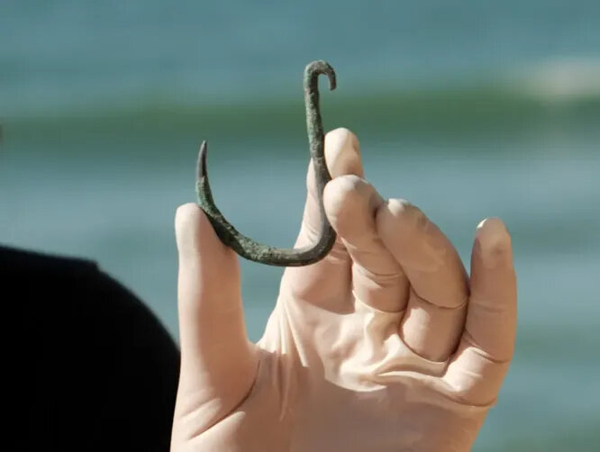 Огромный медный крючок нашли в 2018 году археологи на окраине Ашкелона, районе современного Израиля. Возраст орудия лова учёные оценили в шесть тысяч лет и предположили, что его использовали для охоты на акул или других крупных рыб, пишет Live Science со ссылкой на Управление древностей Израиля. В месте, где был найдена рыболовная снасть, в те годы находился город, восходящий к Древнему Египту. Ранние раскопки, которые вели здесь учёные, открыли византийские и римские сооружения, а совсем недавно в этом месте найдены остатки деревни, существовавшей в медном веке – между 4500 и 3500 гг. до н.э. Найденный крючок, длиной около 6,5 см и шириной 4 см, как считают учёные, вполне мог удержать акулу от двух до трёх метров длиной. Таких как тёмные акулы (Carcharhinus obscurus) или серые акулы (Carcharhinus plumbeus). Ловить на такой внушительный по размерам крючок могли и тунца, обитающего в Средиземном море. «Использование меди началось в период энеолита, и удивительно обнаружить, что это техн
