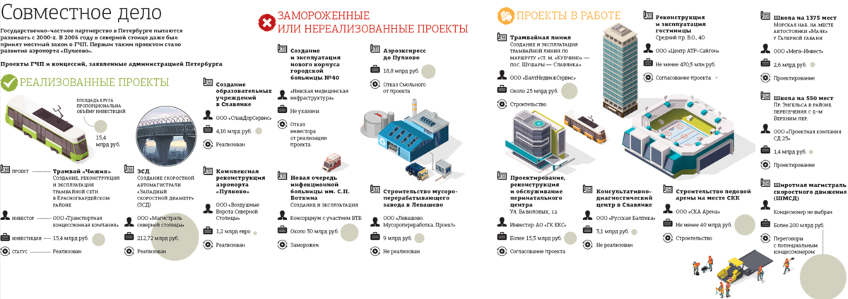 В прошлом году Смольным была приостановлена реализация крупнейшего из заявленных когда–либо медицинских концессионных проектов — строительство нового корпуса инфекционной больницы им. С. П. Боткина площадью 240 тыс. м2, на 770 коек и с ориентировочной стоимостью 30 млрд рублей. Реализовать его планировалось по концессии при участии банка ВТБ. Соответствующее соглашение подписали на ПМЭФ в 2021 году. По информации "ДП", уже на старте возникли проблемы с подбором участка под масштабный проект. А после введения санкций против РФ стороны в связи "со сложившейся экономической ситуацией" задвинули его в долгий ящик.