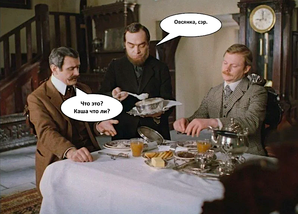 С лёгкой подачи авторов фильма многие в России именно так и представляют себе английский завтрак – тарелка сваренной на воде или на молоке полужидкой овсянки. «Без ничего». А между тем это сущая клевета. Английский завтрак вот ни капельки не такой!