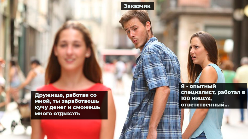 Все пишут: «Я специалист с таким-то опытом работы, продвигал вот это и вот это, вот скриншоты». Всё. А теперь возьмем такое объявление: