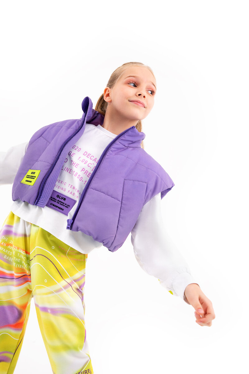 Утепленный жилет изначально был спортивной одеждой, но сейчас он перекочевал в гардероб городских модников и модниц. Мы создали ультрамодный укороченный жилет сиреневого цвета для девочек-подростков, который можно сочетать с разными вещами. Первый вариант - использовать дутый жилет вместо куртки или пальто. Это особенно актуально в нашем климате весной и ранней осенью, когда утром на улице холодно, а спустя пару часов становится комфортно без верхней одежды. Второй вариант - использовать яркий жилет как акцент в кэжуал и спортивном стиле. Он легко сочетается с кроссовками, джинсами или спортивными брюками. Третий вариант - использовать жилет как элемент многослойности. Многослойные образы помимо своей стилистической задачи также помогают сохранять тепло.