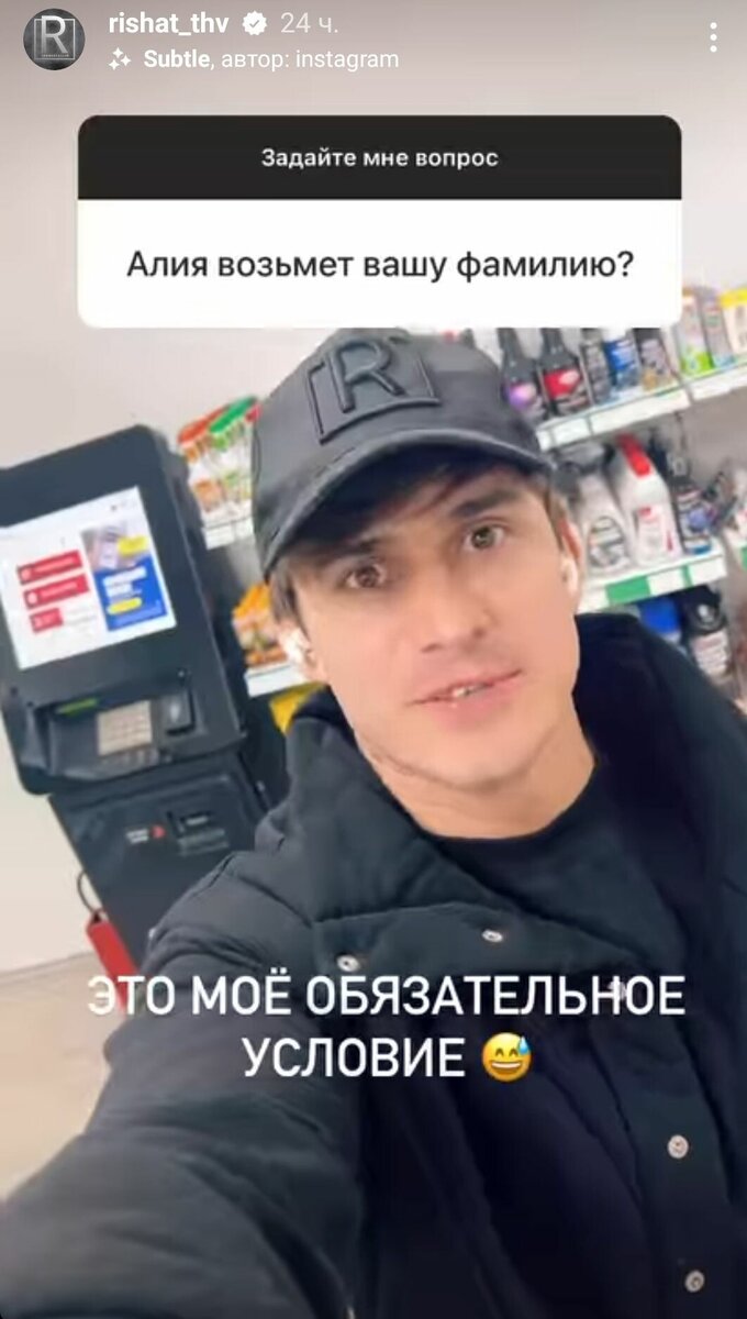 Ришат Төхвәтуллин Алия Карачурина белән никахыннан соң виртуаль дусларының сорауларына җавап биргән. Аларның күбесе яшь парның шәхси тормышына кагыла. «Нигә хатыныгыз өйдә утырырга тиеш? Икегезне дә сәхнәдә күрәсе килә» дигән сорауга «Мин өйдә утырмаячакмын, гастрольләргә йөрмәчәкмен, әмма иҗат итәчәкмен», – дип җавап бирде Алия Карачурина. «Кешеләр мине сине бикләп куя дип аңлый. Ул җырларын яздырыр, зур шәһәрләргә безнең белән гастрольләргә дә йөрер, бәлки. Әмма бөтен шәһәрләр буйлап гастрольләргә чыкмый. Минем уйлавымча, хатын өйдә торырга тиеш. Бу – минем генә фикер түгел. Без уйладык та, шулай эшләргә булдык», – диде Ришат Төхвәтуллин. Калган сорауларга Ришат үзе генә җавап бирде. – Алия сезнең фамилиягезне аламы? – Бу – минем мәҗбүри шарт. – Кайда яшәргә уйлыйсыз? – Фатирда. – Никахтан соң спиртлы эчемлек булдымы? – Тамчы да булмады. – Вакытлыча кайда яшисез? – Фатир яллап яшибез. – Үзегез өчен йорт төзү турында әйткән идегез. Төзелеш барамы? – Казанда төзүчеләр бик күп. Күбесе б