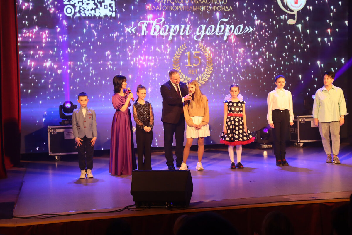 «В этом году благотворительный фонд «Твори добро» свой день рождения отметил в новом статусе. Теперь мы не городской, а областной благотворительный фонд. Ваше участие и неравнодушие уже не ограничивается рамками Белогорска, вместе с вами мы творим добро по всему региону», — обратился к присутствующим руководитель фракции «Единая Россия» в Законодательном Собрании, основатель фонда Андрей