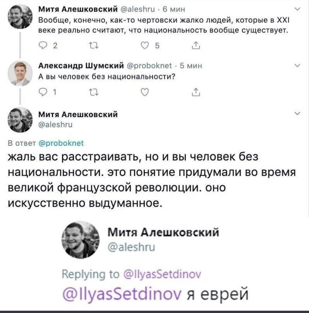 Оцените. Сынишка Тамары Эйдельман не может идентифицировать себя во времени и пространстве. Про французскую революцию ему, небось, мама рассказывала? Она ж историк вроде, она знает. Кстати, об истории. Я, скажу честно, не слишком люблю телевизор, и сериалы смотрю (если смотрю) намного позже того, как огни выходят. Недавно наконец-то посмотрела последнюю экранизацию "Саги о Форсайтах", а вчера решила пустить фоном "Тюдоров". Посмотреть наконец! Так получилось, что этот период английской истории я знаю неплохо, поэтому выключила экран практически после первых же кадров - сразу, как только умертвили несчастного дядю Генриха Восьмого, который был послом в Урбино. Не было у Генриха Восьмого дяди. Ни родного, ни двоюродного, ни по бабушке, ни по матери. Съемочную группу там не Эйдельман консультировала? И не надо писать "историческая драма". Да ладно? Прямо историческая? В общем, нету у Мити национальности. Ну нету - и не надо, казалось бы. Зачем она ему? Но Митя тут же следом выдает посты,