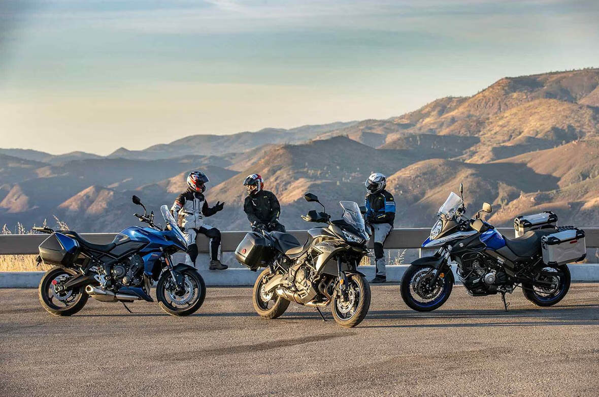 Благодаря интернету приобрести подержанный мотоцикл стало проще, чем когда-либо. Но как быть, если хочется приобрести новый, современный и универсальный мотоцикл, на котором можно покатать подругу, утолить жажду скорости, да еще и чтобы кофры съемные на нем были. Под такие критерии отлично подходят адвенчеры и спорт-туреры, но если бюджет ограничен, скажем, 10000 долларов, выбор существенно сужается. Под такой запрос подходят, например, уже хорошо зарекомендовавшие себя Kawasaki Versys 650, Suzuki V-Strom 650 и новый Triumph Tiger Sport 660.