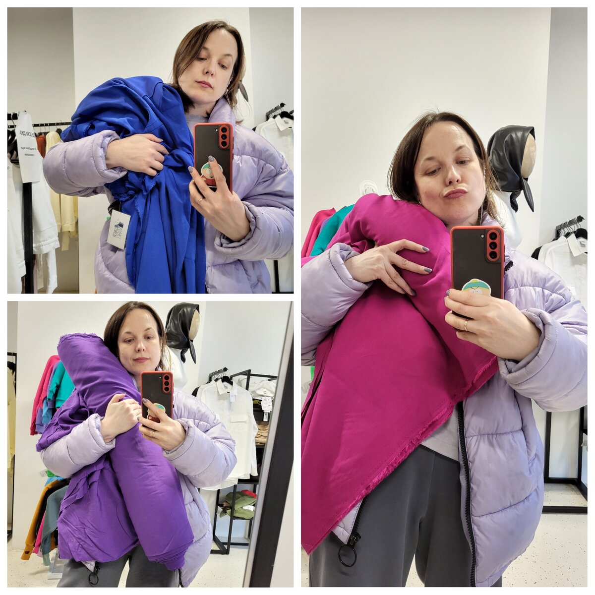 Доброе утро🌷 Мы продолжаем работать над выкройкой. Проверяем последние нюансы. Название платья с вашей помощью придумали. Спасибо вам огромное🌷🥳 А теперь нужно снимать видео-пошив нашей Кармен. И вот какой цвет выбрать? Без вас никак. Я в ступоре)))) А нужно уже сегодня😁 Что шить будем? -фиолет -синий -фуксию