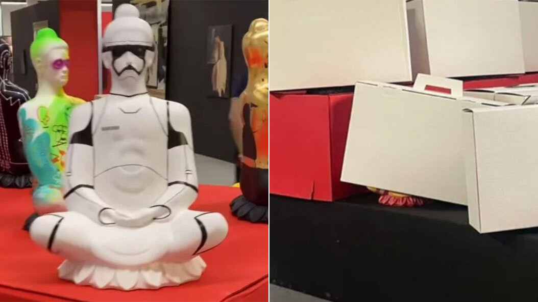 В Перми статуи Будды на выставке закрыли коробками из-за оскорбления чувств верующих