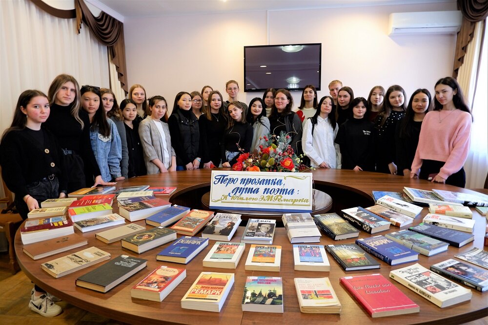 В честь 125-летия со дня рождения выдающегося немецкого писателя XX века Эриха Марии Ремарка в областной научной библиотеке имени Крупской состоялся литературный вечер «Душа прозаика, душа поэта». Творчество Ремарка любимо читателями всего мира. По итогам минувшего года он занял четвёртую строчку в подготовленном Российской книжной палатой рейтинге самых издаваемых авторов художественной литературы с общим тиражом 718 тысяч экземпляров, пропустив вперёд Стивена Кинга, Ф.М. Достоевского и Агату Кристи. Великие произведения «На Западном фронте без перемен», «Три товарища», «Жизнь взаймы», «Триумфальная арка» и другие несут в себе огромный гуманистический посыл и описывают жизнь «потерянного поколения», как назвали людей, чья молодость пришлась на промежуток между двумя мировыми войнами. Участниками литературной встречи стали студенты кафедры немецкого языка факультета иностранных языков АГУ, учащиеся актерского отделения колледжа культуры и искусств, преподаватели социально-педагогическо