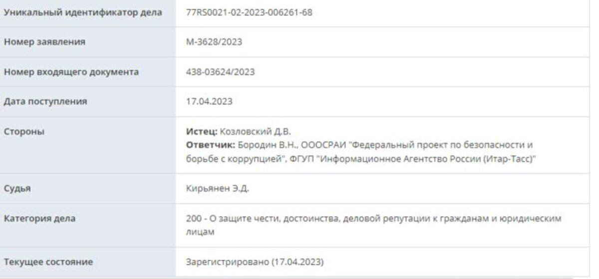 Данила Козловский подал иск о защите чести и достоинства к активисту Бородину
