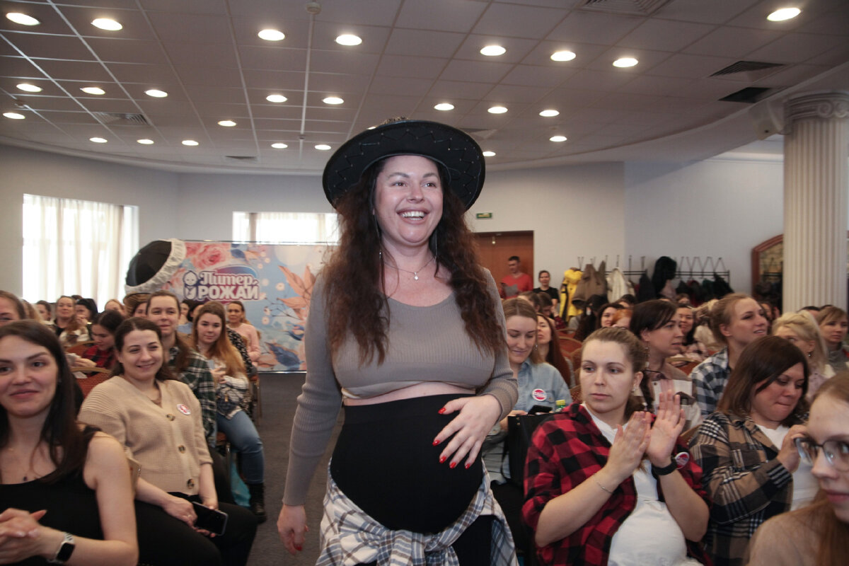 На площадке гостиницы "Октябрьская" ежемесячный фестиваль «Питер, рожай» собрал свыше 400 беременных петербурженок. 7 апреля страна отмечала один из двух дней беременных России, который с начала этого года вошёл в реестр государственных праздников. Именно этот праздник и стал главным лейтмотивом заседания Клуба беременных. Каждый месяц мы тщательно продумываем тематику мероприятий. На этот раз встреча прошла в стиле кантри. Большинство участниц пришли на праздник с соблюдением дресс-кода: в ход пошли рубашки в клетку, ковбойские шляпы, высокие сапоги, джинсы и даже значки шерифа. А за музыкальное сопровождение отвечал яркий музыкальный ансамбль «Зверобой», который перенёс всех собравшихся в атмосферу Дикого Запада и буквально заставил пуститься в пляс под хорошо знакомые мотивы. По уже сложившейся традиции мероприятие посетил Депутат Законодательного Собрания Александр Николаевич Ржаненков. Он рассказал о мерах поддержки беременных и молодых родителей, инициированные Администрацией Сан