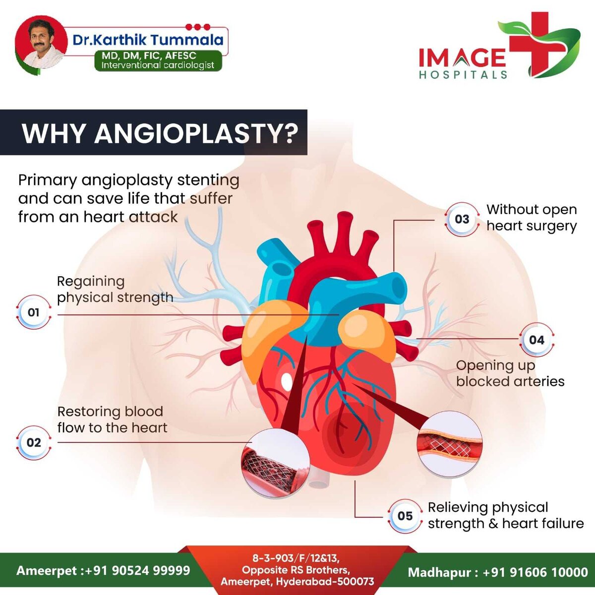 Looking for Angioplasty Treatment In Ameerpet? Our expert team of cardiologists offers state-of-the-art angioplasty procedures to help you get back on track with your heart health. From initial diagnosis to aftercare, our experienced doctors and medical staff provide comprehensive and compassionate care to ensure your successful recovery. Contact us today to learn more about our personalized approach to angioplasty treatment in Ameerpet.