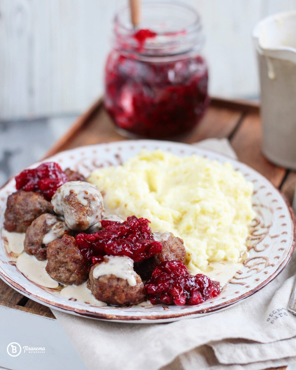 Митболы (они же фрикадельки) с брусничным джемом и сливочным соусом. Очень здорово сочетаются с ягодным джемом и сливочным соусом. Нежные, не сухие, быстро готовятся, с необходимой ягодной кислинкой и молочным элементом в виде соуса. Очень хороши! ИНГРЕДИЕНТЫ: Джем из брусники: