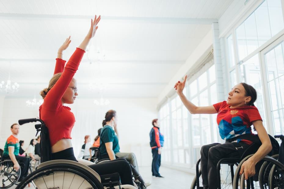 Но сначала – тренировка, последняя на этом мастер-классе. Ее ведет Екатерина Махонина – личность легендарная в паралимпийском спорте. На Олимпиаде в 2014 году она готовила танец сборной колясочников, которому 40 тыс. зрителей аплодировали стоя. До ковида сборная России занимала первое место по количеству всех медалей в общем зачете.