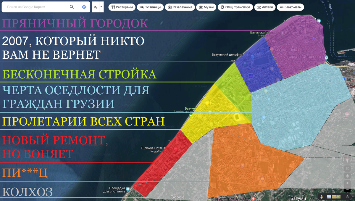 В предвкушении новой волны "поуехавших патриотов России" создал карту Батуми для понимания того, что ожидать от города.