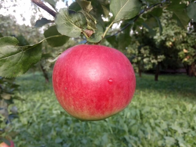 Сегодня хотим представить вам сорт яблони ‘Рождественское’ селекции орловского ВНИИ селекции плодовых культур. Автор - Евгений Седов и соавторы. Два дерева этого сорта были высажены в Ботаническом саду МГУ в 2015 году. Деревья растут быстро. Крона еще до конца не сформировалась, но будет широкопирамидальной. Первое плодоношение было в прошлом году. В этом году собрано всего две корзины яблок. Но они огромные, по 350-400 гр. Одно даже 518 гр! Конечно, нужно учитывать, что плоды на молодых деревьях в первые годы плодоношения всегда крупнее. С годами они станут помельче. Этот сорт – триплоид, иммунный к парше. Яблоки зимнего срока созревания. Сроки съема урожая – середина сентября. Но яблокам нужно дать полежать до октября, чтобы они дозрели. Храниться яблоки могут до конца января. У яблок блестящая зеленоватая кожица с ярким красно-вишневым румянцем. Мякоть белая или кремовая, плотная, нежная, очень сочная, кисло-сладкого десертного вкуса.