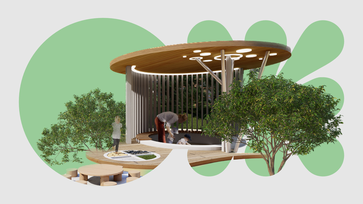 Проект территории разработан ландшафтным бюро в стиле органической бионики. Этот современный стиль воплощает в себе футуристические формы и природное начало. В нем используются плавные рельефы, натуральность, мягкие контуры. Предпочтение отдают малым архитектурным формам из дерева и других экоматериалов.