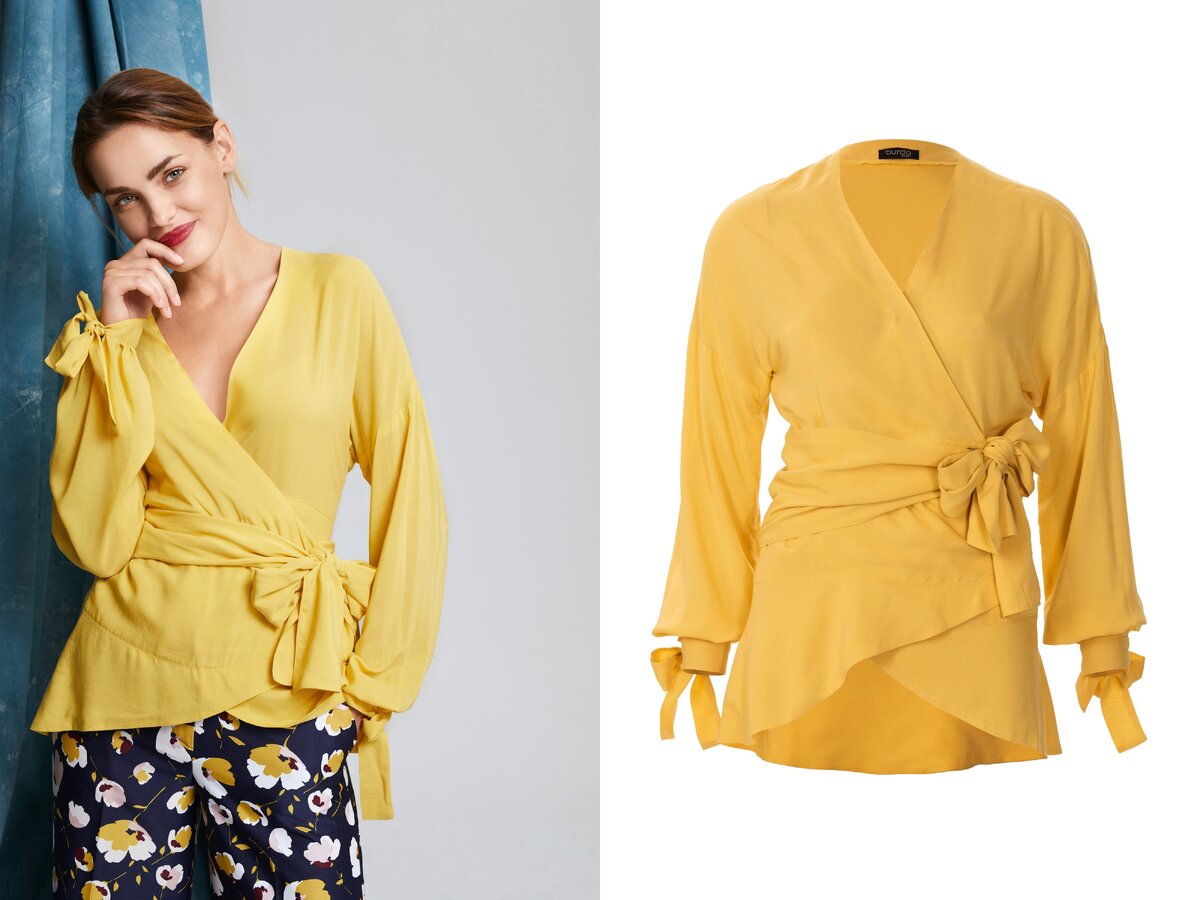 Прелестная модель покоряет не только изобилием деталей, но и ярко-желтым цветом блузочного хлопка.