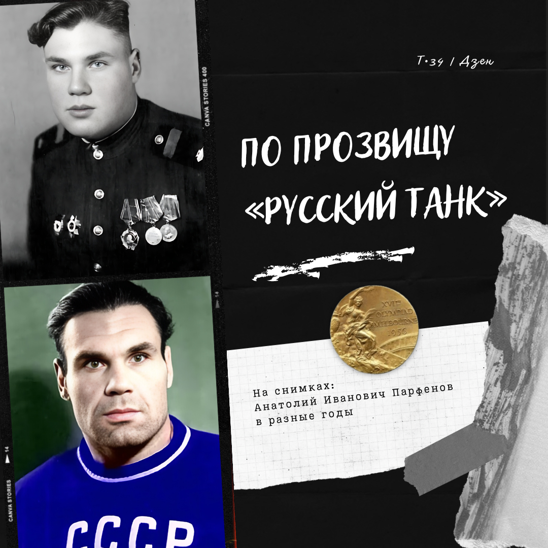 - Мельбурн, 1956 год. Летние Олимпийские игры. На высшей ступеньке пьедестала с золотой олимпийской медалью в руке стоит советский борец Анатолий Парфенов. Анатолий был не только борцом высокого класса — он обладал огромной физической силой и выносливостью. И — он был солдатом Великой Отечественной войны. На следующий день в одной из австралийских газет вышла восторженная статья под красноречивым заголовком: «Русский танк»...