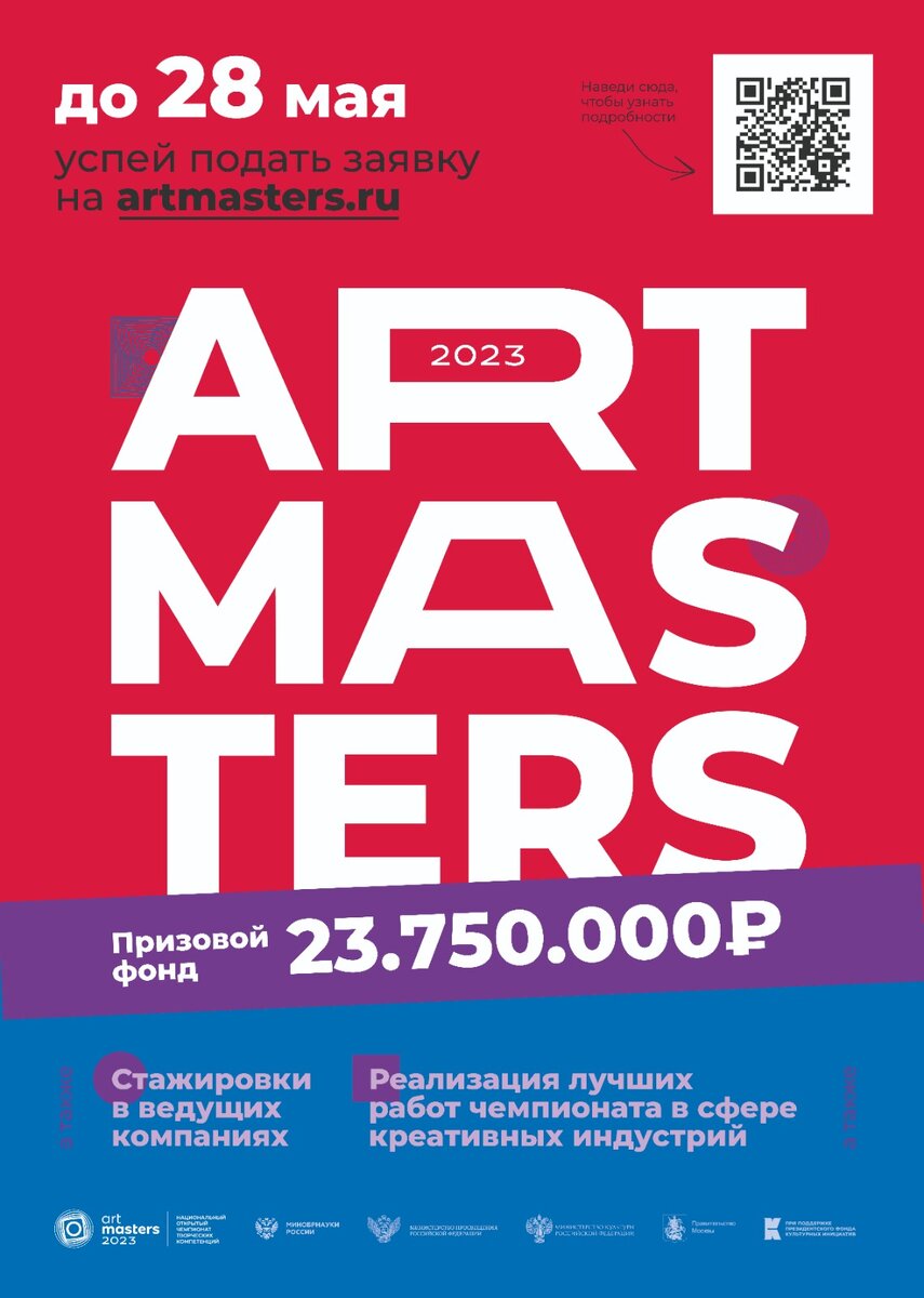 Национальный открытый чемпионат творческих компетенций ArtMasters – масштабные профессиональные соревнования для специалистов в сфере backstage и цифрового искусства, которые реализуют самые крупные креативные проекты под руководством ведущих экспертов. Участники Чемпионата – это тысячи молодых профессионалов креативных индустрий со всей страны. В Чемпионате представлены две возрастные категории юниоры (14-17 лет) и основная (18-35 лет).