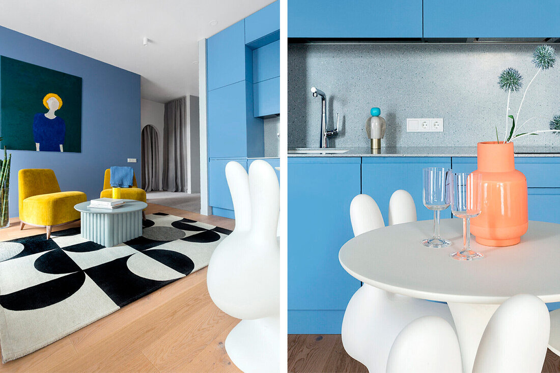 Эта двушка в деревне Копище выглядит словно из журнала о дизайне квартир: полукруглые арки над дверью, четкие яркие цвета, идеальная геометрия. Продавец рассказал, что сколько здесь стоит. Например, на паркет в двух комнатах он потратил четыре с половиной тысячи долларов, около пяти тысяч на двери, а на технику ушло десять тысяч долларов. Квартиру в базе Realt заметил телеграм-канал «Будни риэлтора». Квартира-студия находится по адресу Небесная, 7. Рядом с кварталом большой лес, спорткомплекс, школа, детский сад. Недалеко магазины «Соседи» и «Гиппо». Дом шестиэтажный, квартира находится на пятом этаже. Двор огорожен, есть спортивные площадки и места для отдыха. Вход по чипу. Вот как выглядит дом, подъезд и яркая входная дверь в квартиру. Общая площадь квартиры — 45 квадратных метров. Гостиная совмещена с кухней. Спальня изолирована. Стены в квартире идеально выровнены и покрыты моющейся краской. Каждая комната выкрашена в свой цвет. Потолки зашиты гипсокартоном. Входные двери в спальню