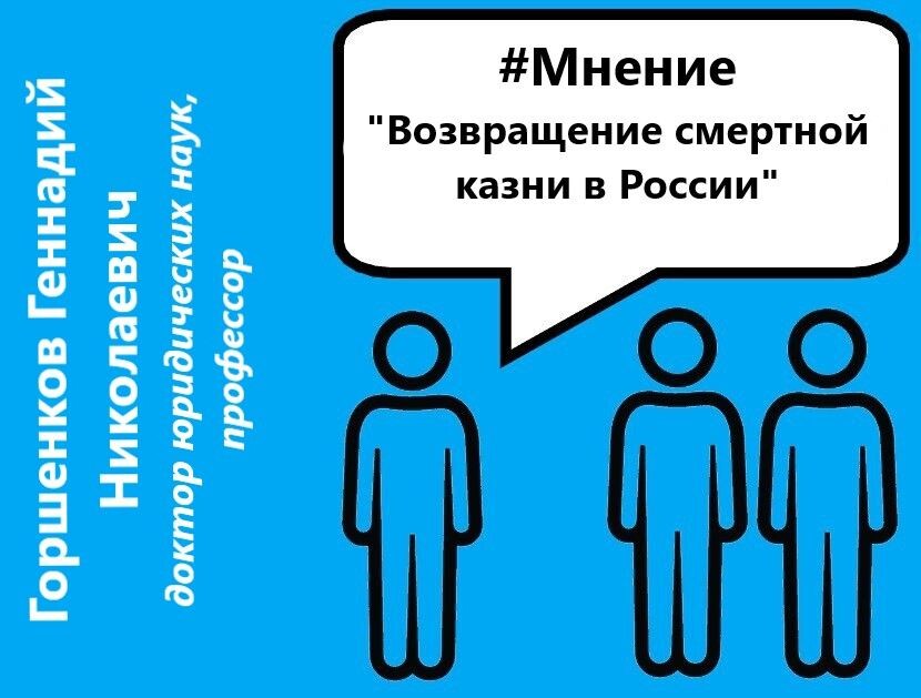 Возвращение смертной казни в России: экспертное мнение Дорогие читатели мы продолжаем публиковать статьи проекта «Мнение» на тему «Смертная казнь в России». Редакция отмечает возросший интерес к данной проблеме после убийства 2 апреля взрывом бомбы в кафе Санкт-Петербурга военкора Владлена Татарского. Террористический акт совершила россиянка Дарья Трепова. Она арестована, идёт следствие. За возвращение смертной казни выступают глава ЛДПР Леонид Слуцкий и лидер «Справедливая Россия — Патриоты — За правду!» Сергей Миронов, а также зампред Совбеза Дмитрий Медведев. Разговор с экспертом: какие аргументы в пользу и против высшей меры наказания? Сегодня мы продолжим обсуждение одной из самых спорных тем в области правосудия - смертной казни. Нашим гостем в рамках проекта «Мнение» является профессор, доктор юридических наук Геннадий Николаевич Горшенков. - Геннадий Николаевич, как Вы относитесь к возможному введению смертной казни в России? - «Логически отрицательно. Смертная казнь – исключи
