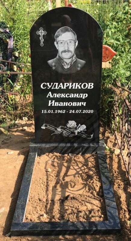 Наша компания изготовила и установила памятное надгробие на могилу на одном из кладбищ Московского региона. Композиция состоит из стелы классической формы, украшенной с помощью лазерной гравировки (портрет усопшего, ФИО, даты рождения и смерти, крест, цветы, эпитафия), простой прямоугольной тумбы и цветника открытого типа. Вся конструкция выполнена из чёрного карельского гранита, Габбро-диабаза. Гранитная мастерская "Память М" - изготовление памятников на могилу. Каталог моделей представлен на нашем сайте, выбирайте размер, материал и варианты оформления в удобном калькуляторе.