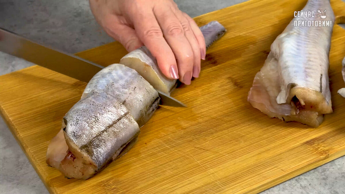 Рыбу нужно почистить, отрезать плавники, вынуть черную пленку из брюшка и порезать на куски.