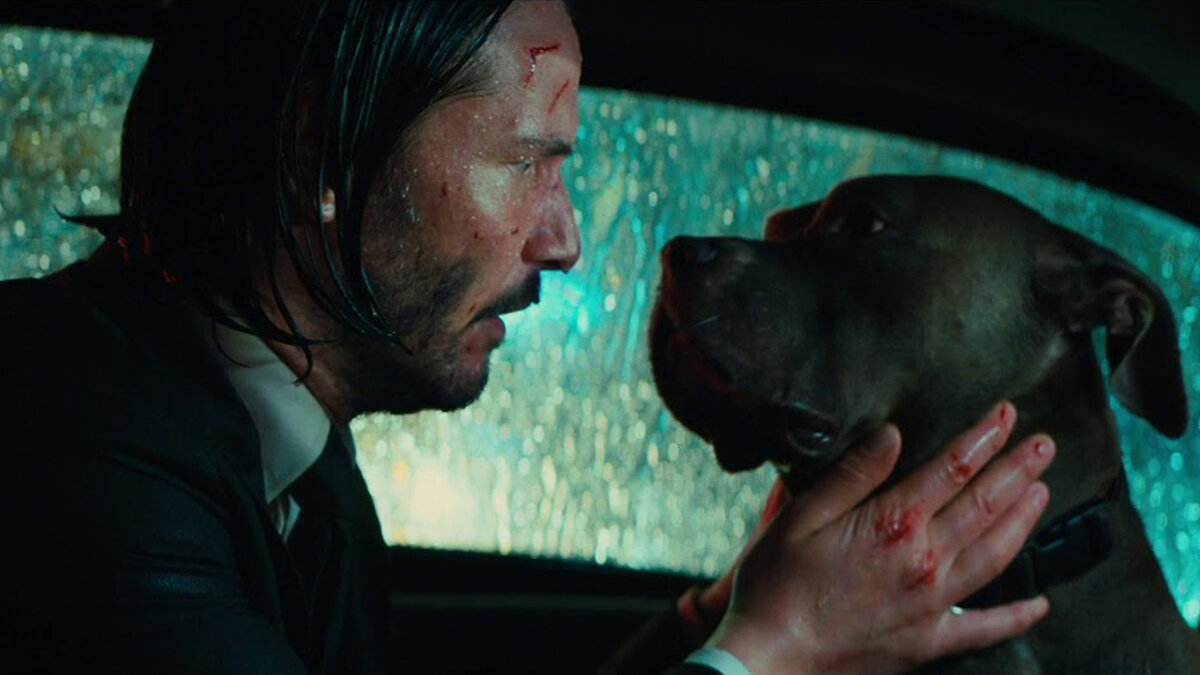 В последние минуты первого фильма тяжело раненный Джон попадает в ветклинику, чтобы в буквальном смысле залатать свои раны. Там он находит в клетках несколько собак, ожидающих усыпления, и спасает одного из псов — безымянного питбуля. Конечно же, все символично: эти двое отчаянно нуждаются друг в друге, в тепле и заботе. И Джон Уик, потерявший, пожалуй, самую милую собаку в истории кино, неожиданно обретает другую, а с ней и самого себя.