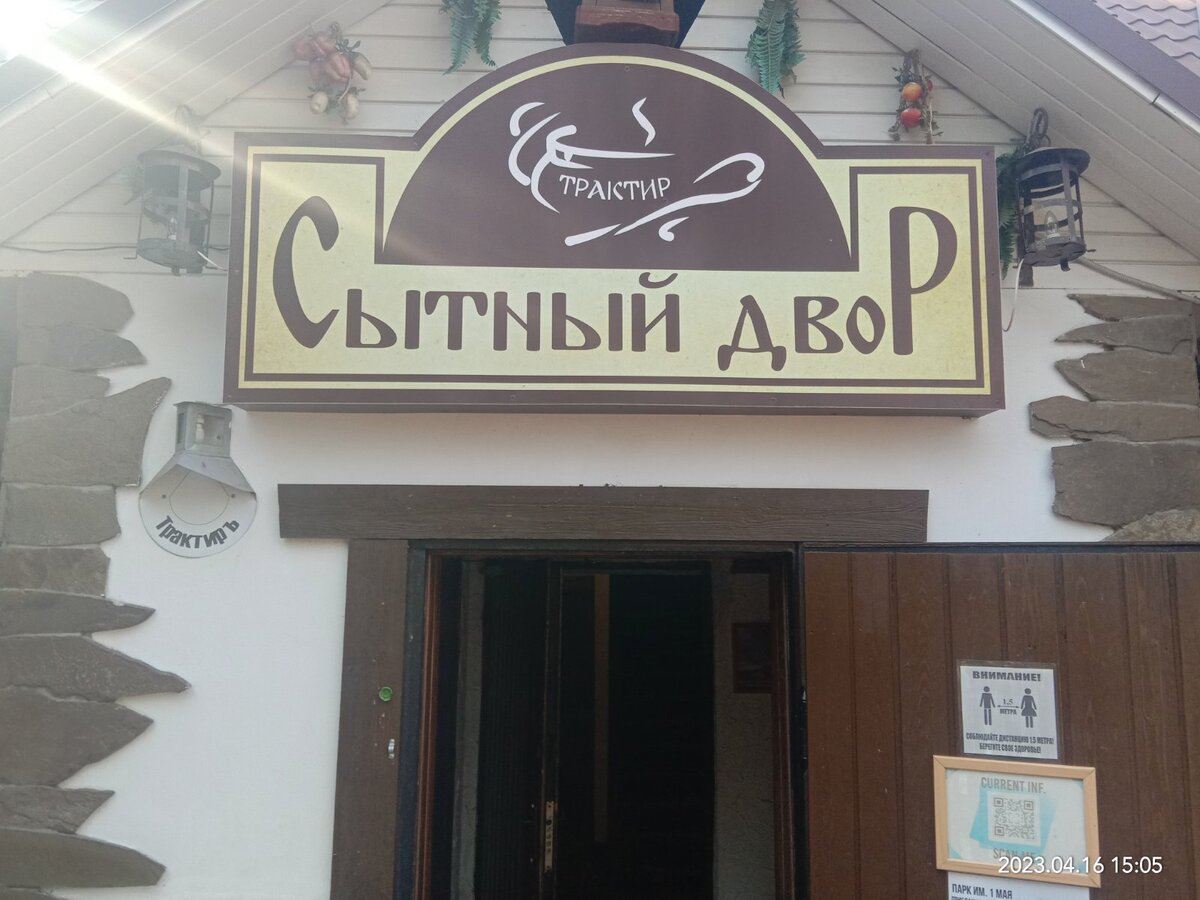 В парке 1 мая мы посетили кафе Сытный двор, предлагаю вашему вниманию обзор заведения, обстановку и цены.