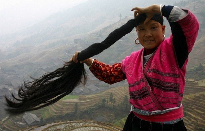 В нашем мире можно встретить много действительно удивительных вещей. Одной из них является высокогорная деревня Хуанлу, женщины которой стригут свои волосы лишь один раз в жизни. Собственно, именно этот факт и сделал это поселение уникальным, притянув к азиатским "Рапунцель" тысячи туристов. Так, для местных женщин волосы являются наивысшей ценностью, ведь они символизируют красоту, долголетие и силу. Вот их и отказываются стричь. Что уж там, до 1980-х годов женские волосы тут нельзя было даже трогать: нарушителя могли обратить в рабство! Конечно же, срезать свое богатство дамы не хотят, поэтому стригутся они лишь один раз в жизни — в возрасте 18 лет. Но и эти волосы не выкидываются. Из них создаются пышные шиньоны, которые девушки потом носят на своей голове до самой старости. Впрочем, тут вообще не принято выкидывать волосы: даже выпавшие волосинки девушки собирают, чтобы сплести из них косу. Так, шевелюра обычной женщины тут похожа на соборную солянку из шиньона, косы с выпавшими во