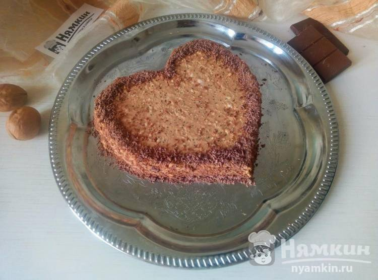 1.Торт Маковый с творогом и сгущенным молоком без выпечки Торт Маковый с творогом и сгущенным молоком без выпечки - это прекрасный тортик, который легко сможет приготовить даже начинающая хозяюшка. Торт получается мягким, нежным, с творожно-маковым вкусом. Очень вкусно! Что потребуется: Рецепт: 1. Творог смешиваем с вареной сгущенкой, перебиваем блендером. 2. Добавляем мак, перемешиваем деревянной ложкой. 3. Из молотого кофе и кипятка варим крепкий черный кофе, а затем на пару секунд обмакиваем в него печенье и выкладываем его на ровную поверхность, например, на поднос. 4. Промазываем слой печенья слоем крема из творога и вареной сгущенки с маком. Так повторяем несколько слоев: печенье, а затем крем. Часть крема (буквально пару ложек оставляем на утро). Убираем тортик на ночь в холодильник. 5. Утром вынимаем тортик и ножом прорисовываем на нем контур сердца, а затем вырезаем торт в форме сердечка с помощью ножа. 6. Промазываем края нашего тортика оставшимся кремом. 7. Шоколад натираем