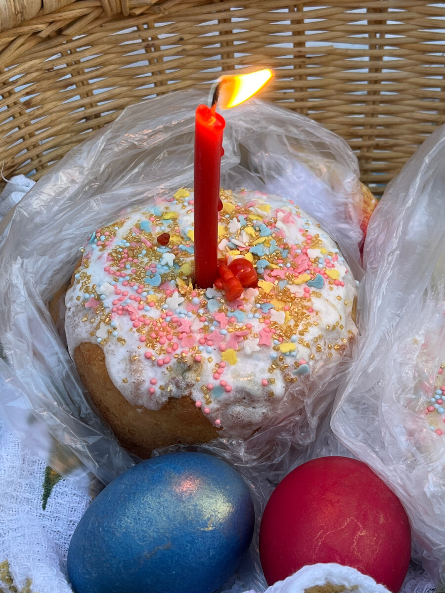 - Украсить по вашему вкусу. У меня набор посыпок для куличей. Можно использовать шоколад, цедру, сублимированные или сушеные ягоды, сахарные фигурки.
