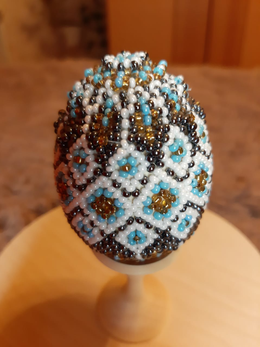 Всем здравствуйте. Пока еще живем в ощущении праздника, решила выполнить свое обещание, которое дала в прошлом году. Многим читателям понравились мои яйца. Но их плохо видно на общих фото. Поэтому я сегодня покажу яйца крупным планом. Текста будет мало. Особенно рассказывать не о чем. Коллекция, есть коллекция ) Расскажу только, как все начиналось. Я долгое время увлекалась вышивкой крестиком. Наборы для вышивки покупала в интернет-магазине РИОЛИС. И однажды в каталоге увидела набор для плетения яйца из бисера. И я решила попробовать, хотя никогда раньше этого не делала. В наборе была понятная инструкция, как плести яйцо. Не сразу, но у меня получилось его сделать. Вот оно, самое первое яйцо. Ну а дальше я купила бисер разных цветов, деревянные заготовки и стала по аналогии плести такие же яйца, но в другой цветовой гамме. Руку набивала. Но однажды в журнале увидела схему плетения малахитового яйца. Яйцо должно было быть большое. И схема довольно сложная. Если предыдущие яйца плетутся