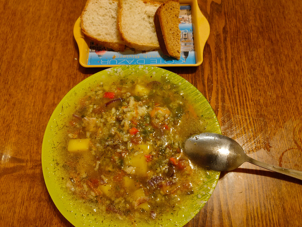 4. По окончании варки заправляем наш суп специями (которые не любят длительную варку), зеленью, солим, перчим (при необходимости) и даём ему время настояться - 30-60 минут.