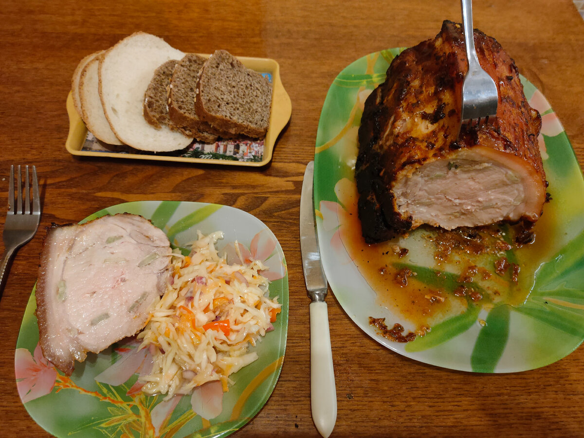 Прикупил как-то по случаю в магазине хороший кусочек свинины свежего разруба. Хотел было сначала разделать его на мякоть, косточки (в суп) и сало (засолить), но сала как-то мало оказалось, а шкурку выкидывать тоже не хотелось. В общем, решил приготовить этот кусочек целиком. Готовлю я такие блюда теперь только в аэрогриле - в нём гораздо удобнее, чем в духовке, а также его гораздо легче мыть после использования. У кого аэрогриля нет, то мясо по этому рецепту вполне можно приготовить и в духовке! Перед приготовлением я решил нашпиговать мясо чесноком и слегка замариновать его для лучшего вкуса. Маринад я придумал сам, буквально на ходу, из того, что было в наличии. Надеюсь, что вам понравится этот очень простой и лёгкий в приготовлении рецепт. Спасибо! Приготовлено в аэрогриле Hotter НХ-1097 Tiger NEW Ингредиенты для «Маринованная свинина с чесноком в аэрогриле»: Для маринада Для мяса Подготавливаем все ингредиенты.