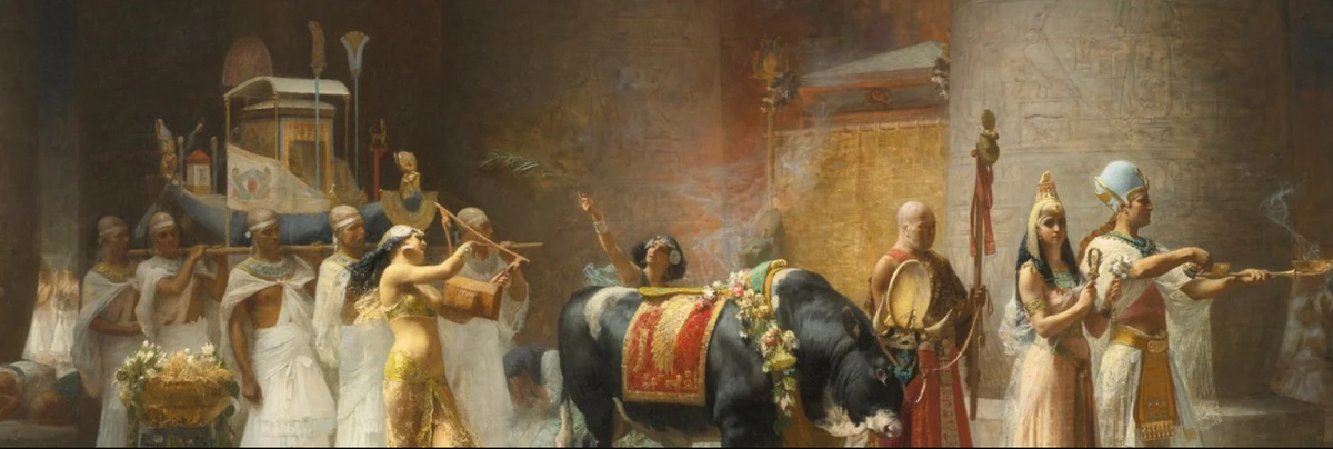 В Древнем Египте можно было довольно часто наблюдать настоящий «культ быков», по крайней мере, с момента создания Первой египетской династии. В то время образ мощного и мужественного быка ассоциировался с фараоном, получившим прозвище «сильный бык своей матери». В 3100 г. до н. э. египтяне предположительно идентифицировали священного быка по характерным отметинам на шкуре. После того, как животное было «подтверждено» как воплощение бога, его поселили в роскошных помещениях, давали только лучшую пищу в регионе и гарем из лучших коров. После смерти быка мумифицировали и похоронили со всеми почестями. С тех пор этот тип верований стал довольно популярным в регионе. Откройте для себя некоторые из самых популярных культов быка в Древнем Египте. Телец Апис Культ быка Аписа, безусловно, самый известный в истории Египта. Согласно местной легенде, животное было воплощением бога. Однако, в отличие от других тотемов животных, которые служили только связующим звеном с сущностью, считалось, что Апи