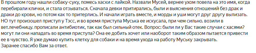 Поэтому ответ на вопрос следующий - самый оптимальный вариант в случае который писал подписчик-это закрывать одну из собак в клетку, причём желательно закрывать в клетку собаку у которой эпилепсии нет.