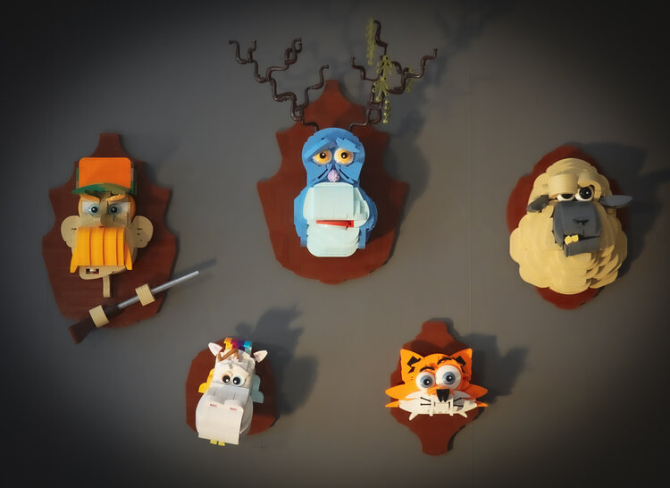 Если вы видите какие-то необычные постройки из Лего, то вы скорее всего говорите что-то вроде "Вау!" или "Я тоже так хочу!" Сегодня расскажу вам о фанате конструктора, который делает Лего смешным. Это творения талантливого создателя самоделок Рикарда Стенсби. Он создаёт не просто постройки, а настоящих персонажей. С мимикой, эмоциями, ну не Лего, а какой-то пластилиновый мультфильм! Я хочу познакомить вас с его таксидермической коллекцией. Если честно, сам я не люблю эту тему, любовь к животным не даёт нормально воспринимать их чучела. Но вот в таком ироничном виде для меня это именно высмеивание желания людей повесить голову на стену. У этого оленя (это же олень?) очень грустное выражение лица. В принципе, логично - сложно радоваться тому, что висиишь на стене. Меня удивляет детализация: эти широкие брови, выражение рта из детали рога и классная "зелень" на рогах заставляют удивиться какие чудеса можно сделать из обычных кубиков. Теперь обсудим эту классную лису. Усы креативно сделаны
