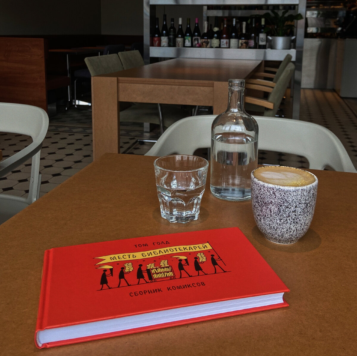 Издательство «Бумкнига» Том Голд обладает искромётным чувством юмора и тонким, философским ощущением мира. В этом остроумном сборнике комиксов, посвящённому миру литературы, Голд предоставляет возможность посмеяться над классиками, современными авторами, самим собой и библиотекарями. 16+ В чашке латте «Мятная карамель» на кокосовых сливках от from Berlin