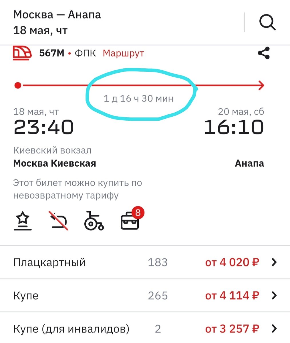 Как мы знаем , например, до Анапы из Москвы можно доехать за 21 час или за 1 день 16 часов. Разница ощутима по времени . Если мы нажмем на слово Плацкартный, мы увидим стоимость билетов и можем выбрать удобное для нас место. Выбирая скоростной поезд, мы видим , что цена билетов 5651,40 руб . Но если нажать на 25 вагон(последний вагон),стоимость билетов будет 3830, 30 руб. Это даже дешевле, чем мы бы поехали на поезде 1 день 16 часов. Единственный минус, что последний вагон не фирменный. Что для этого нужно? Набираем в интернете официальный сайт ржд или скачиваем приложение. Регистрируемся , если в будущем будем покупать билеты через личный кабинет ржд. Очень удобно . Можно выбрать время и поезд. Распечатывать билеты перед посадкой не нужно.Проводнику нужно показать только паспорт и свидетельство о рождении ( для детей). Спасибо, что дочитали статью до конца! Надеюсь,она была Вам полезна.