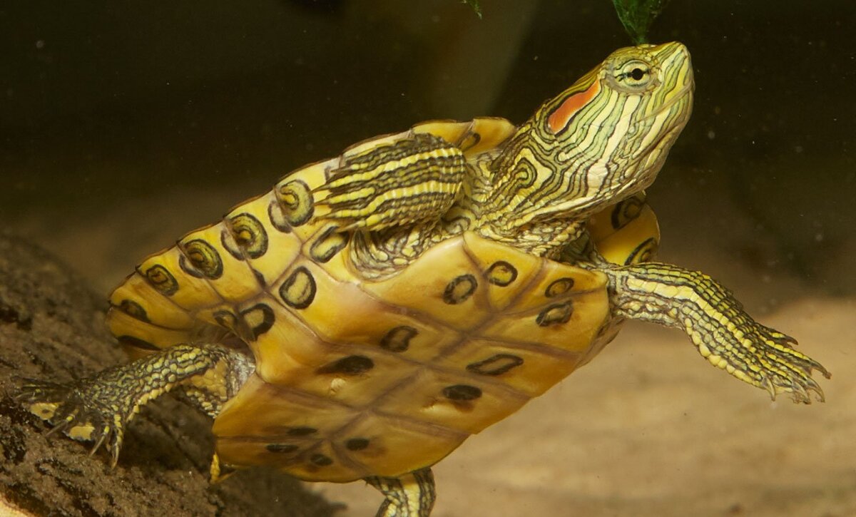 Красноухие черепахи становятся популярными домашними питомцами. В это статье мы расскажем, как правильно ухаживать за красноухой черепахой. АКВАТЕРРАРИУМ. Все водные черепахи, включая красноухих, содержатся в акватеррариумах. Существуют готовые варианты, либо же можно переоборудовать обычный аквариум. Для взрослой особи нужен аквариум не менее 150 литров. Черепахам не очень важна глубина, зато они любят поплавать, поэтому следует ориентироваться на площадь дна. Часто террариум для черепах делается открытым, поэтому убедитесь, что в месте его установки не бывает сквозняков. Аквариум устанавливается на устойчивую ровную поверхность, например, на специальную тумбу. ОСВЕЩЕНИЕ. В качестве подсветки используют люминесцентные или светодиодные лампы для аквариума. Они дают ровный свет по всей площади террариума и практически не греются. Длина светового дня для красноухих черепах должна составлять 10-12 часов. ОБОГРЕВ. Емкость делится: две трети должна занимать вода и одну треть – суша (остр