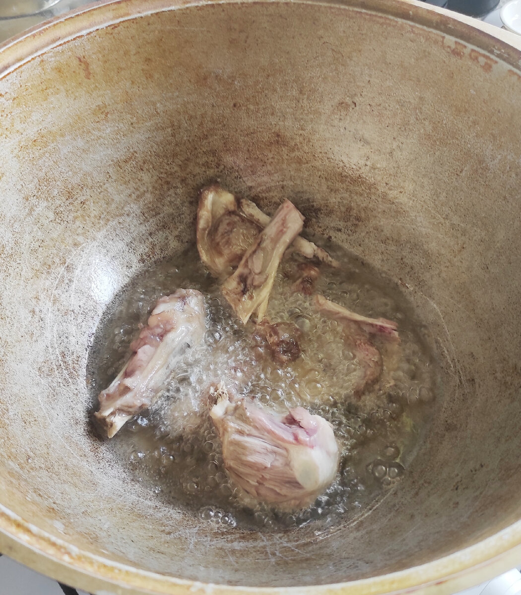 Это очень вкусно и очень просто. Меня учила женщина Марджубахон, упрощающая для русских своë имя до "Маша". Темноглазая, черноволосая " Маша" выросла в семье, где папа очень любит плов и готов его есть хоть каждый день. Сами понимаете, ничего сложного в таком плове, каждодневного приготовления, быть не должно. Не стоять же людям у плиты от зари до зари! В общем, всë просто. Мы покупаем баранину (или говядину) для плова в халяльном магазине. Если с косточкой - тот там же на еë рубят на несколько частей. Собственно, с косточки и начинается процесс приготовления. Хотя нет... Сперва нужно сильно разогреть курдючный жир (если вы, счастливчик, его любите и может добыть самого высокого качества) или растительное масло. Много масла. Вообще, пропорции всего воплощение легко запомнить: 1 кг мяса 1 кг моркови 1 кг риса 0.5 кг репчатого лука 0,5 литра масла Хорошая щепоть зиры Соль по вкусу Каюсь, я не лью в казан пол литра масла. 300-400 гр. Это масло нужно очень хорошо прогреть. Проверять