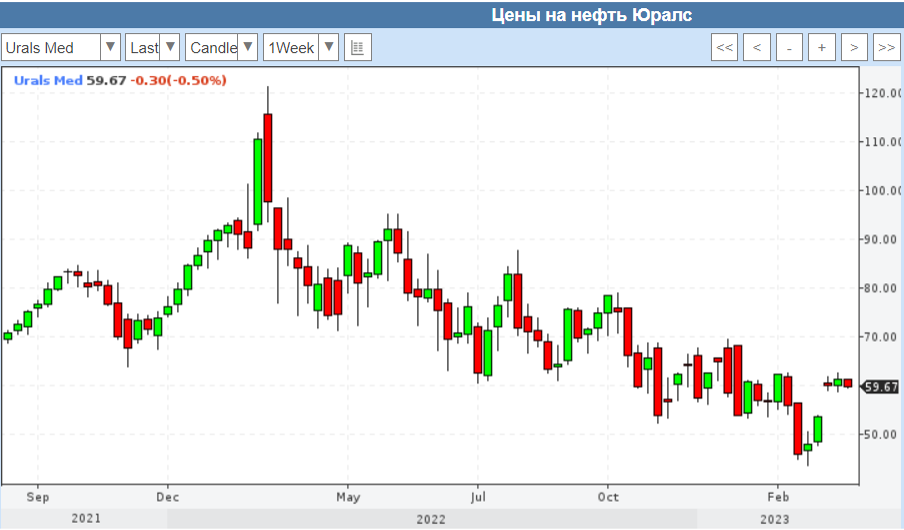 💯 Минфин опубликовал расчёт экспортной пошлины на май. Чем он интересен? Там рассчитывается средняя цена марки Urals из которой вытекает сумма экспортной пошлины. За период с 15 марта по 14 апреля средняя цена Urals составила — $51,15. А значит экспортная пошлина на нефть в РФ с 1 мая 2023 года повысится на $0,1 и составит $14,4 за тонну. Отмечу, что по тем же данным Минфина средняя цена Urals в марте составила $47,85 (-46.3% гг), как вы понимаете цена на сырьё продолжает увеличиваться (на текущий момент Urals торгуется по $60 за баррель). Данная динамика цен положительно влияет на нефтяных эмитентов, но есть ещё несколько факторов, которые "говорят" в пользу нефтегазового сектора: