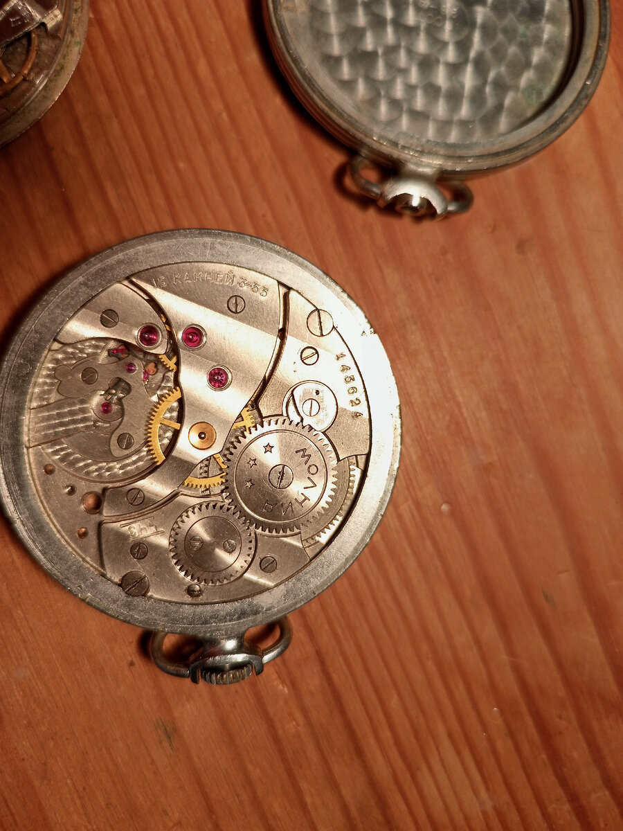 Я всегда любил часы, любые, карманные, наручные, настенные, напольные. Они привлекали меня невероятными возможностями воплощения человеческой мысли, как в области механики, так и в области искусства. Красивая вещь, при этом обладающая приличным функционалом. Я ленив, поэтому долгое время был, лишь покупателем понравившихся часов. Но, мне, чего то не хватало, не хватало тайны, истории, значимости и главное сопричастности. Я не историк, и разгадывать тайны могу только в интернете, с помощью информации разной степени достоверности. Я не механик, и поэтому, сопричастность тоже, навряд-ли мне грозит. Но тут мне попалась интересная затея, делать из старых советских часов "марьяжи". Старый механизм в новом, модном корпусе. Идея меня захватила. И, я купил несколько механизмов карманной Молнии, заказал на АлиЭкспресс корпуса для них. Про это я тоже напишу, когда что-то получится. Но сейчас я не об этом. Мне попался еще один механизм карманных часов, с очень похожей судьбой, Молния была созд