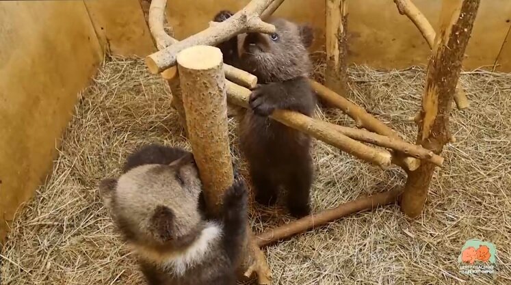 Тюменские медвежата Тайга, Ермак и Лайма обживают новый дом