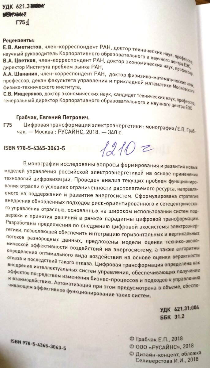 Цифровая трансформация электроэнергетики: монография/ Е.П. Грабчак - Москва: РУСАЙНС, 2018. - 340 с.
