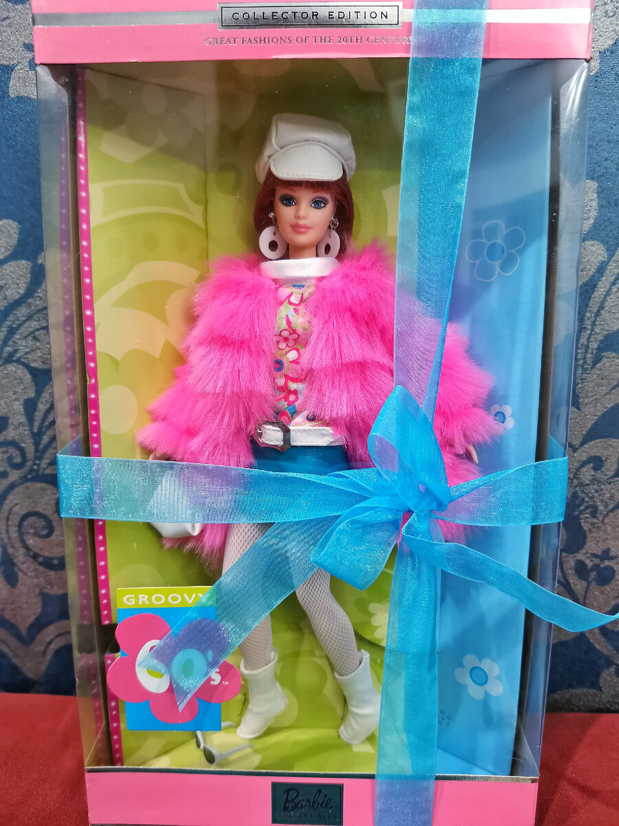 Как-то активно я начала развивать коллекцию, меня это немного пугает. Раньше то количество, которое я приобретала за год-полтора, теперь получается всего за пару месяцев. Почему? Не знаю. 🤷♀️ Но это по-прежнему приносит ощущение детского восторга, как и в первый раз. Сегодня я к вам с очередными новинками. Две из них запланированные, две - спонтанные. Начну в том порядке, в котором покупала. 1. Barbie Groovy 60's 2000 года И первая девушка - это Барби 60-х. С ярко-рыжим каре, стильным тематическим макияжем, в розовой шубе (тяготеет Маттел все-таки к розовым шубам) и в необычной коробке с рельефной крышкой из пластика. Люблю стиль 60х, Барби эффектная, так что решение о приобретении периодически всплывало, но барышня редкая, почти невозможно встретить ее в продаже в России, к тому же не хотелось тратиться на НРФБ, поэтому надеялась, что попадется б/у. Но я поняла, что проще найти ее как раз в коробке, так что увидев объявление в Авито, тут же схватила. Продавец любезно согласилась сд