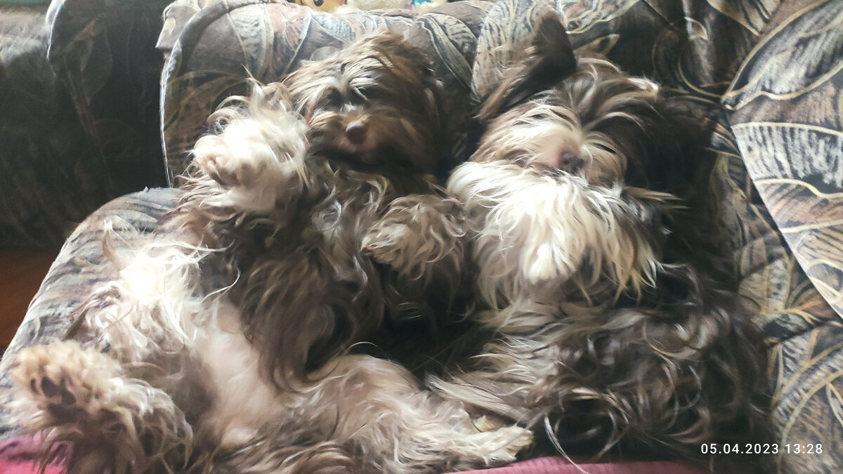 В прошлые выходные отмечали папин день варенья. Это было что - то. Назвал он кучу людишек, жрать их не разрешил. Гавкать я устал, Гери вообще до сих пор в шоке. Прошлый ДР она не помнит, т.к. была малышкой, а в выходные играла роль собаки - бояки. Все гости хотели нас тискать, но я же кусаюсь и меня не трогали. Все шишки достались Гери, пришлось мне за нее заступаться и я не подпускал сильно к ней надоевших людишек. Праздник удался, гости уходили поздно. На следующий день родители повели нас в лес, хотели поснимать видео. Но в лесу тоже было полно людишек и затея не удалась. Порадуем вас нашими фотками. Теперь у нас все волосы спутаны после леса. Зато мы хорошо побегали там. А на пруд у дома прилетели мои утки. Вот такие у нас новости. А еще мама ищет нам грумера, а нас выставки в мае.